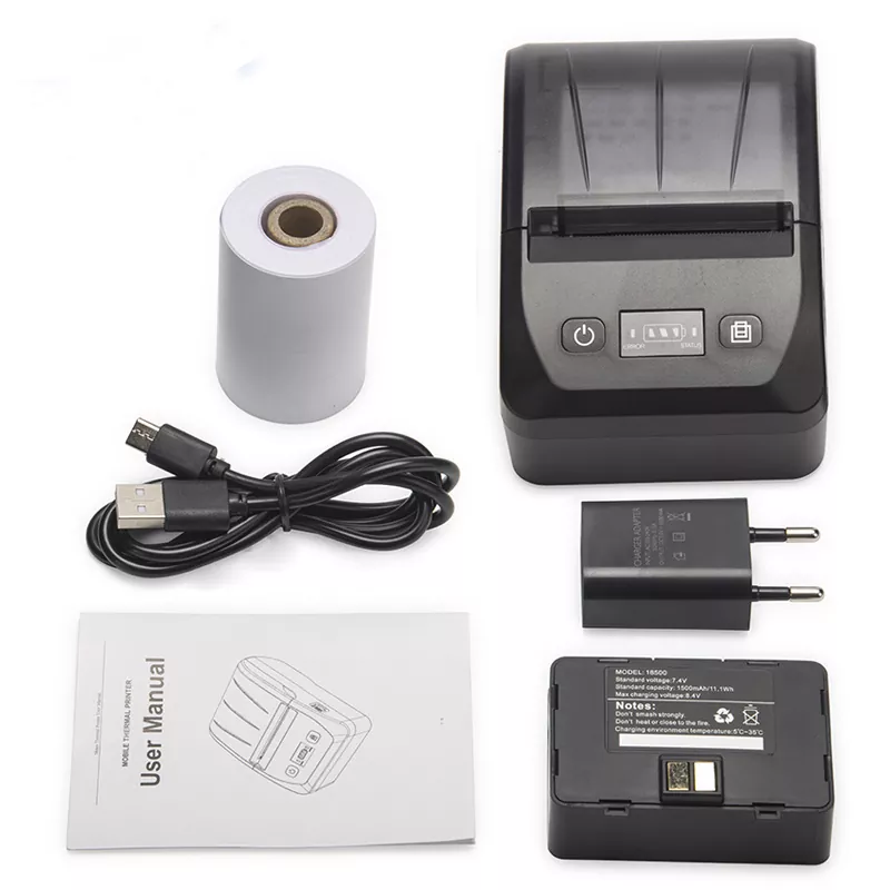 Den har en standard Bluetooth + USB dobbelt interface, kompatibel med Android, iOS, Windows og ESC/POS kommandoer. Det komplette tilbehør inkluderer: USB-opladningskabel, strømadapter, papirrulle og brugervejledning.