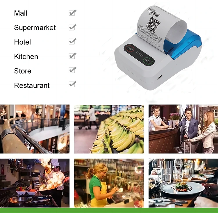 Termiske Bluetooth trådløse blækfri printere bliver stadig mere populære og bruges i vid udstrækning i flere brancher såsom detailhandel, catering, logistik og sundhedspleje. Detailbranchen kan bruge det til hurtigt at udskrive indkøbskvitteringer. I cateringbranchen kan den printe ordrer med det samme. I logistikbranchen kan den udskrive ekspresleveringsetiketter. I den medicinske industri kan den udskrive journaler og recepter. Disse applikationsscenarier viser alle den høje effektivitet og anvendelighed af termiske Bluetooth-printere.