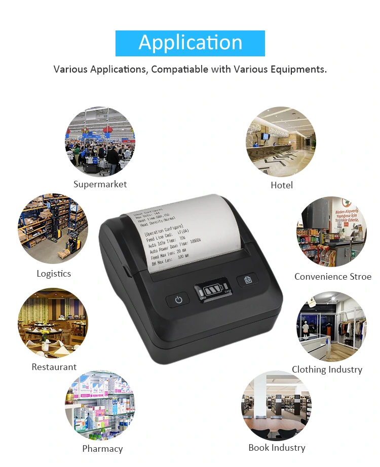 Som en bærbar mobilenhed er vores design lille i størrelsen og fuldt funktionsdygtig. Det interne design har gennemgået et stramt design og en dybdegående optimering med et batteri med stor kapacitet og et udskrivningsmodul i bredformat. 80 mm Bluetooth-printeren er i stand til automatisk at skære papir. Den kan nemt klippe termopapir med en glat og hårløs kant, og har en lang levetid og kan bruges ofte.